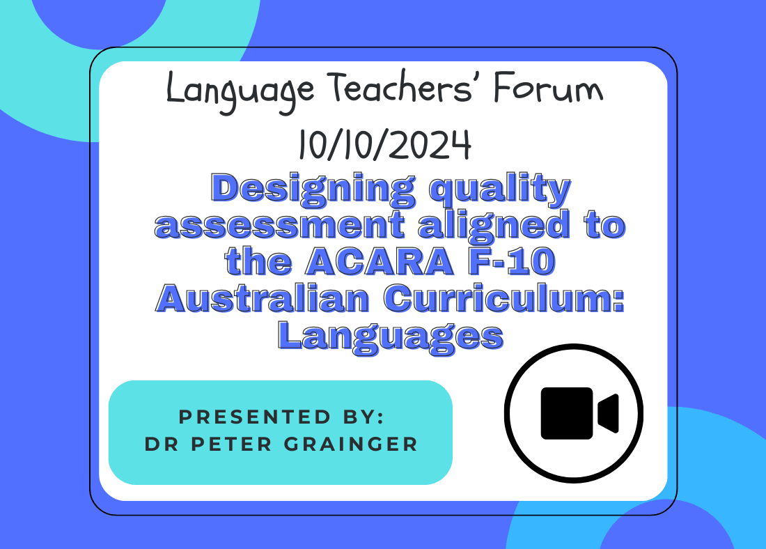 The Language Teachers' Forums (LTF) are a collaborative partnership between networks and branches all over Queensland. The links to the recordings of the sessions are to the LTQ Professional Learning YouTube channel. Check the LTQ Events page for future LTFs - you can participate via Zoom.